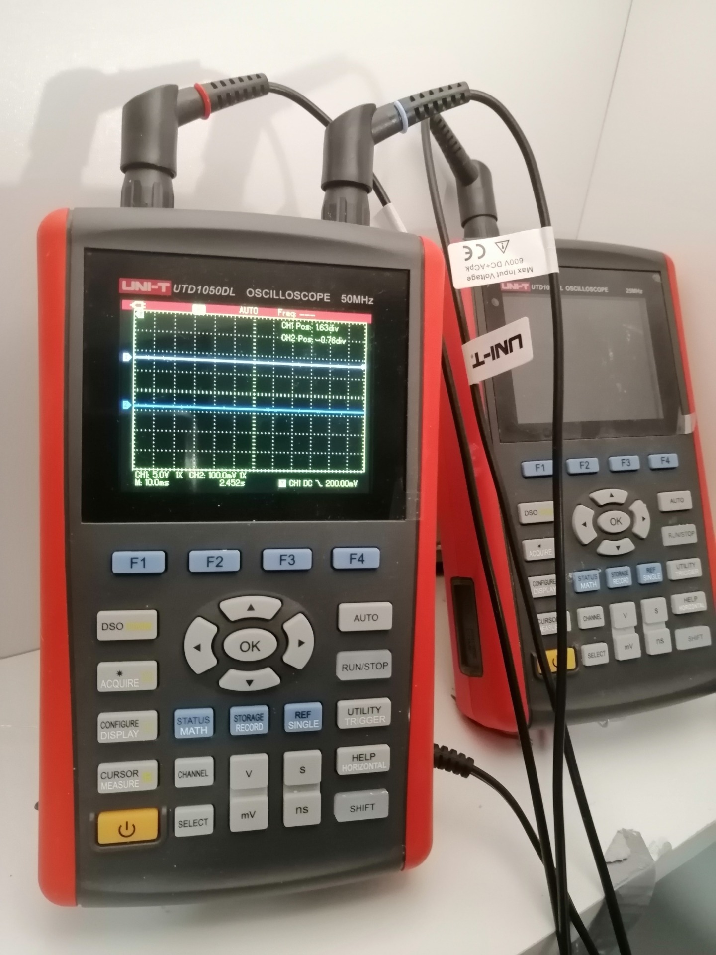 Oskilloskoopilla voi mitata kaikkia samoja asioita kuin yleismittarilla. Kuvassa oleva 2-kanavainen 50Mhz oskilloskooppi pystyy mittaamaan jänniteen yli 50 000 000 kertaa sekunnissa kun tavallinen yleismittarin näyttö päivittyy karkeasti kerran sekunnissa. Tällä saavutetaan se etu että nopeatkin jännitevaihtelut saadaan mitattua helposti.. Oskilloskoopissa on tosin vielä muitakin ominisuuksia mitä yleismittarissa ei mutta pääsääntöinen käyttö on jännitemittaus.